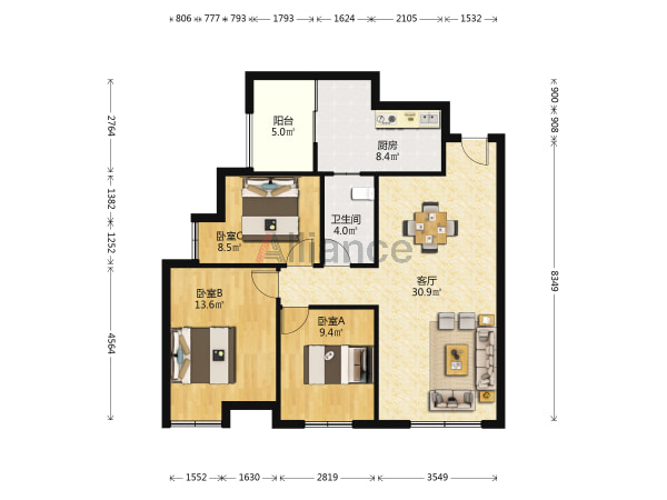 普罗旺斯!79万 精装三房,朝南,直接拎包入住,次新小 ...