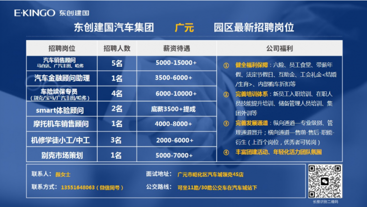 [招聘] 广元建国汽车园区招聘销售(大石、元坝、雪峰、荣山的看过来)