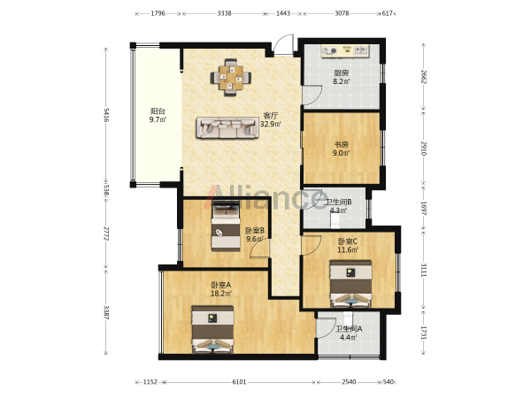 万源政府大厅附近震后电梯洋房3居室精装,122平米,南北 ...
