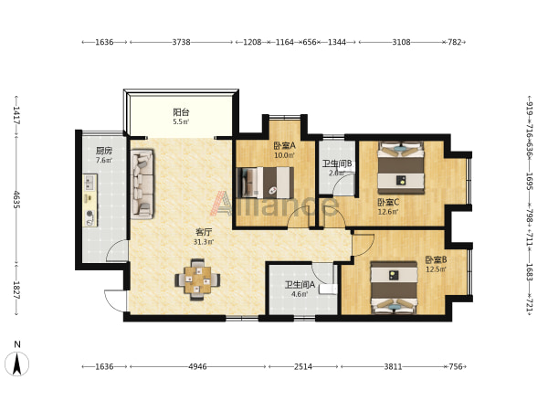 万达中学附近震后电梯3居室精装,108平米,价格实惠,诚 ...